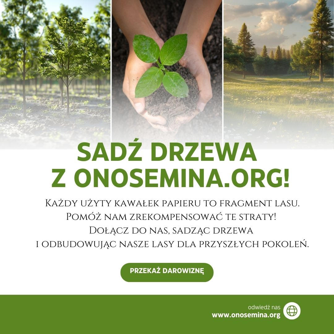 W onoSemina.org wierzymy, że każde użycie papieru niesie za sobą odpowiedzialność wobec naszej planety. 🌏 Jeśli korzystamy z jej zasobów, powinniśmy dać coś w zamian. Proponujemy, aby za każdy użyty arkusz papieru zasadzić nowe drzewo. 🌱